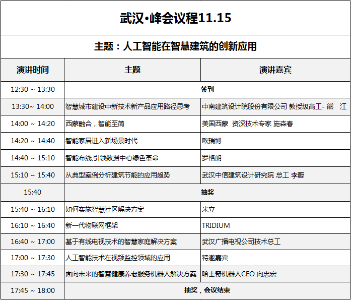 那么,當前人工智能技術在智慧建筑有哪些創新應用呢?本屆峰會武漢站,我們將邀請中南建筑設計研究、武漢中信建筑設計院總工,以及羅格朗、美國西蒙、歐瑞博等國內外知名智能化品牌企業共同探討與分享當前人工智能技術在建筑中的應用案例與未來發展趨勢。