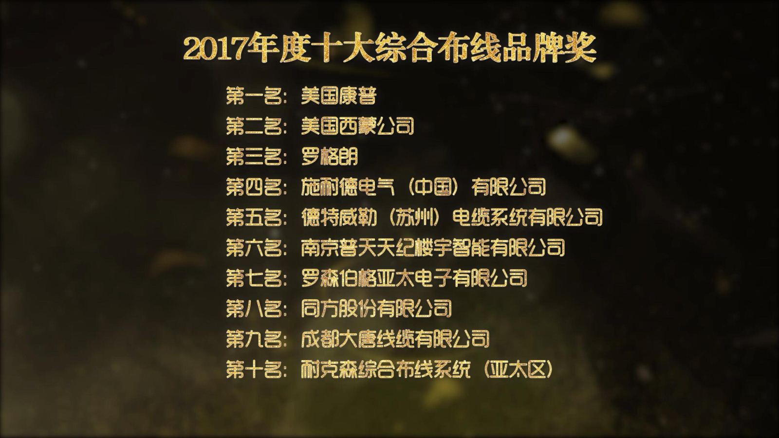 12月7日,伴隨著建筑智能化行業(yè)年度大型盛會——第18屆中國國際建筑智能化峰會的圓滿落幕,被譽(yù)為建筑智能化行業(yè)“奧斯卡”的2017年度【中國智能建筑品牌獎】頒獎典禮于當(dāng)天晚上在廣州東方賓館隆重舉行。在數(shù)十位建筑智能化專家、領(lǐng)導(dǎo)以及200多位智能化品牌企業(yè)高級管理人員的見證下,頒獎典禮共揭曉了11個年度十大品牌獲獎名單,共106個智能化品牌企業(yè)獲獎。其中,"2017年度十大綜合布線品牌獎"及單項獎伴隨著璀璨星光新鮮出爐。