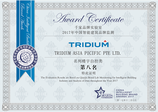 榮耀見證,Tridium榮獲2017年度十大樓宇自控品牌獎第八名