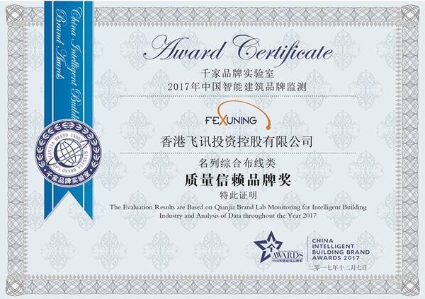 [導讀]香港飛訊投資控股有限公司憑借強大的產品實力,榮獲2017年綜合布線質量信賴品牌獎。