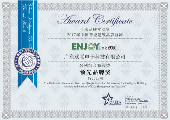 12月7日,2017年度中國國際建筑智能化峰會暨《中國智能建筑品牌獎》在美麗的羊城廣州隆重舉行。頒獎典禮上,ENJOY Link歡聯作為一家專門從事綜合布線的廠家,憑借自身的實力與不斷創新的精神,拿下了2017年綜合布線“領先品牌獎”與“數據中心創新品牌獎”雙項大獎。