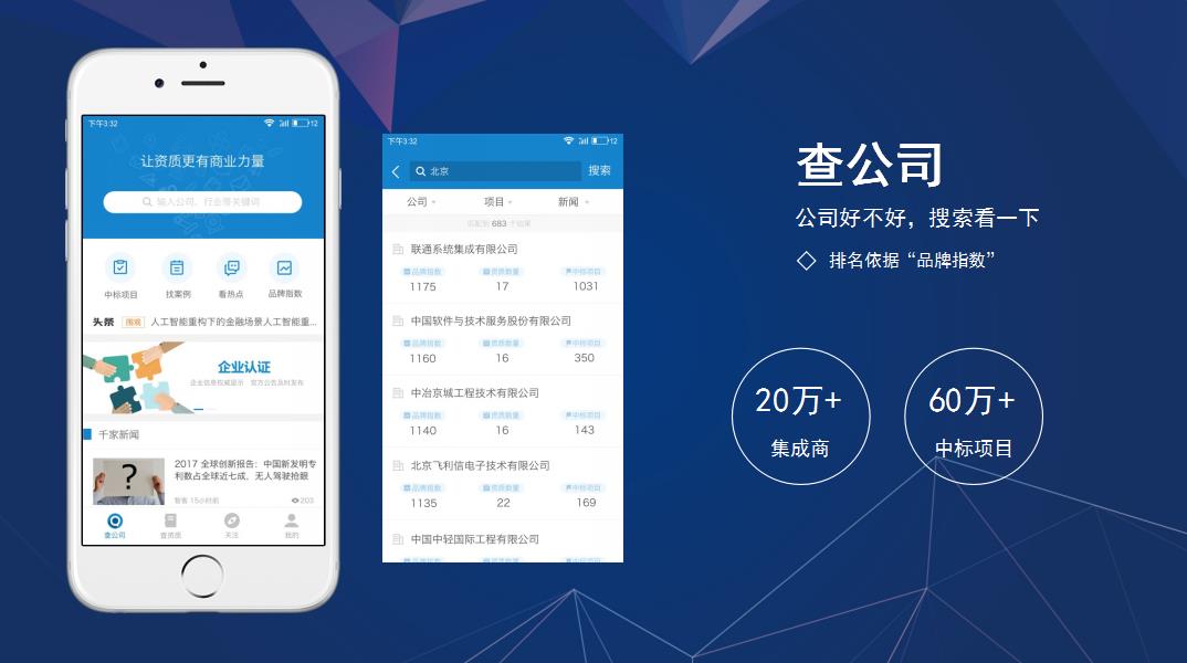 集成商優選APP主要有兩大功能,查公司和查資質。