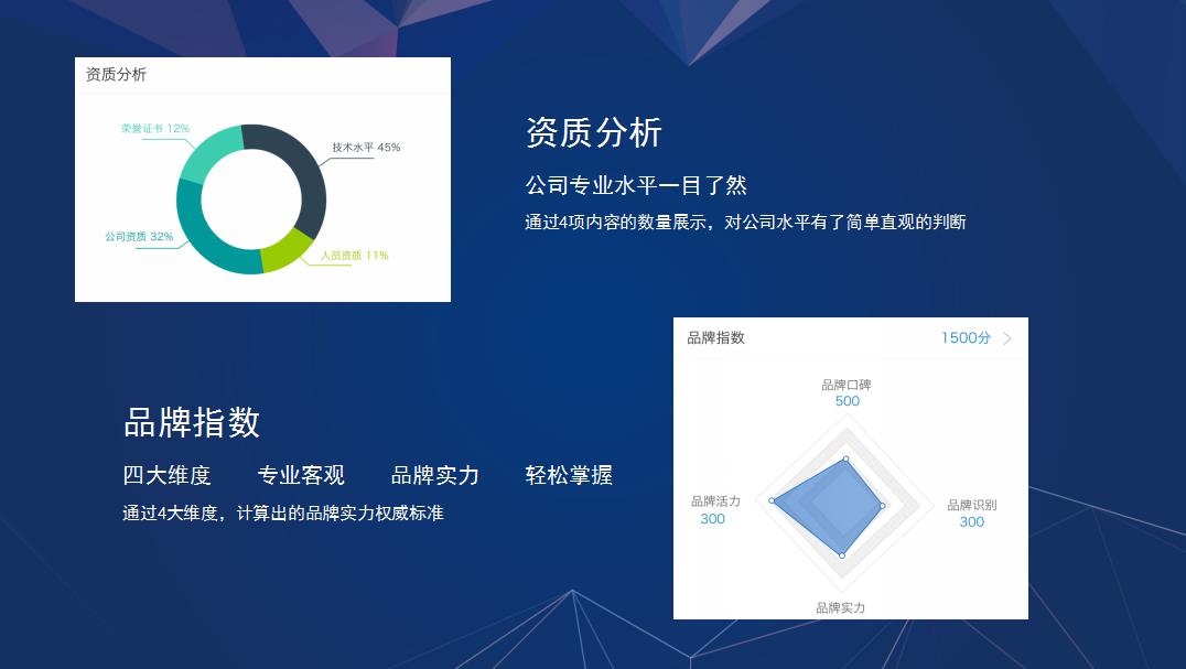 針對智能化產業系統集成商信息零散且不透明的現狀,主動連接和整合了多種數據庫資源:企業工商信息、信用、招投標信息、資質信息等,并對智能化領域的互聯網信息進行數據挖掘、分析,進而建立更為全面的集成商品牌數據庫,并以品牌指數排名作為“集成商優選”查詢結果的排列依據。