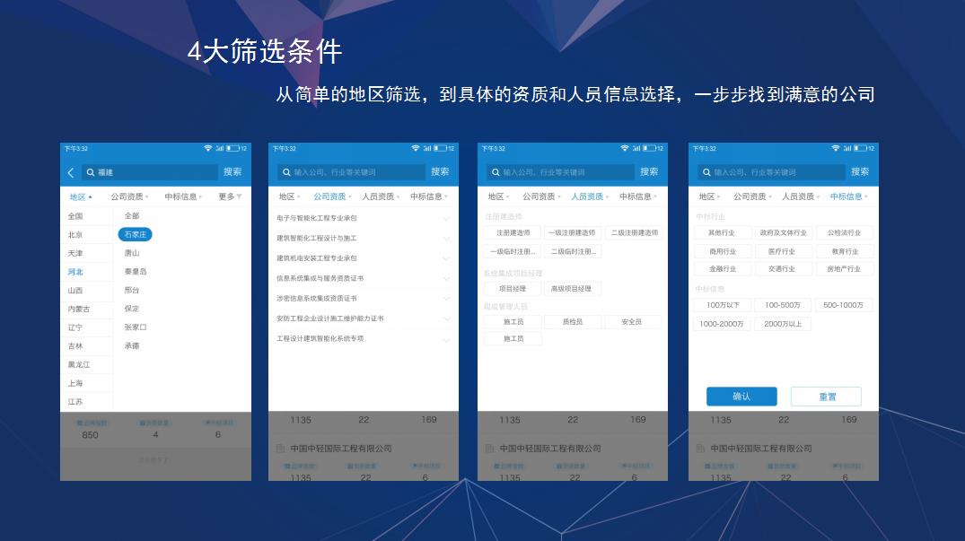 當你不知道自己要找什么樣的集成商,集成商優選提供地區、公司資質、人員資質、中標信息4項篩選條件,幫你找到合適的集成商。