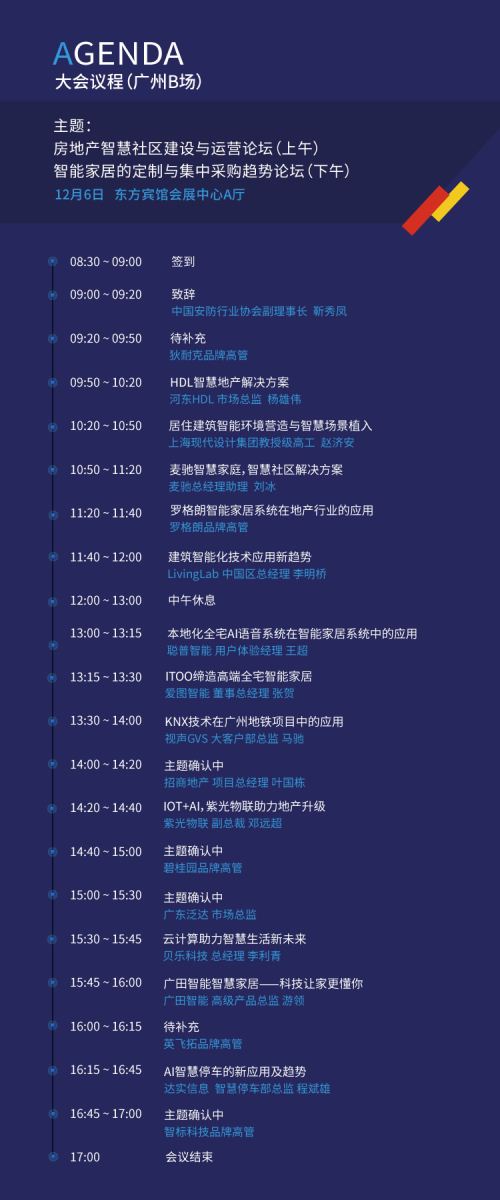 在2018年12月6日,一年一度的建筑智能化行業盛會——第十九屆中國國際建筑智能化峰會(簡稱:峰會)廣州站,將于東方賓館隆重啟幕,屆時,知名智能建筑領域專家、知名品牌高層、行業大咖將齊聚一堂,共同探討智慧城市及智慧社區領域最新發展趨勢及應用,值得一提的是,由于出席人數逾千人,峰會廣州場將分為A、B兩場。