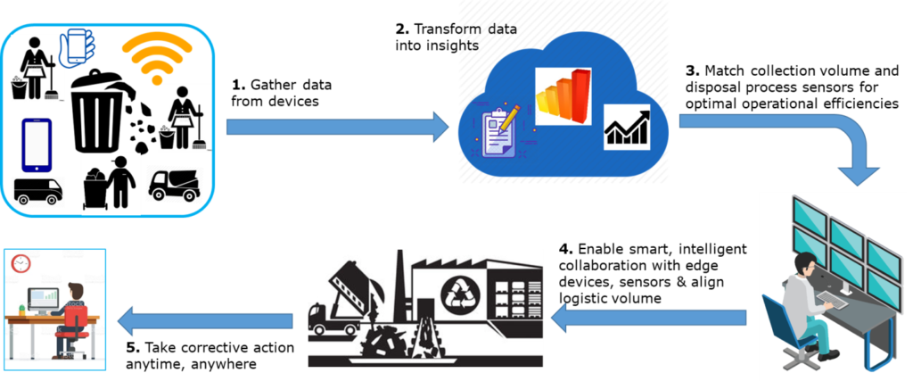 如今,任何智慧城市的城市垃圾管理都是現(xiàn)場設(shè)備或傳感器的相互作用,它們聯(lián)網(wǎng)在一起,生成數(shù)百萬個數(shù)據(jù)點,由此獲得的數(shù)據(jù)被輸入云平臺,并通過復(fù)雜的分析框架進行分析,然后得出合理的、可操作的推論,從而更好地服務(wù)于該城市的市民。整個過程是自動化的,幾乎沒有人為干擾。